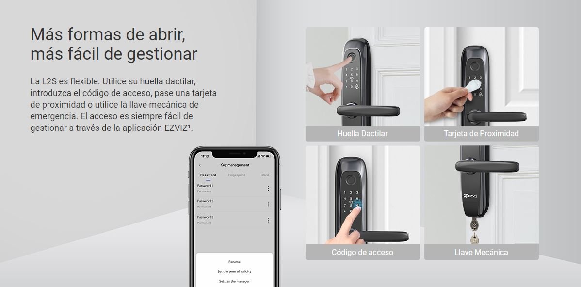 El acceso protegido es ahora sin llave y sin esfuerzo. Es momento de decir adiós a las pesadas llaves colgantes y a las voluminosas y oxidadas cerraduras de las puertas, porque la L2S de EZVIZ está listo para mejorar su próxima puerta principal. La L2S hace que su puerta sea más fácil, rápida y segura, y protege a sus seres queridos con un diseño resistente y las características de seguridad que los hogares necesitan.